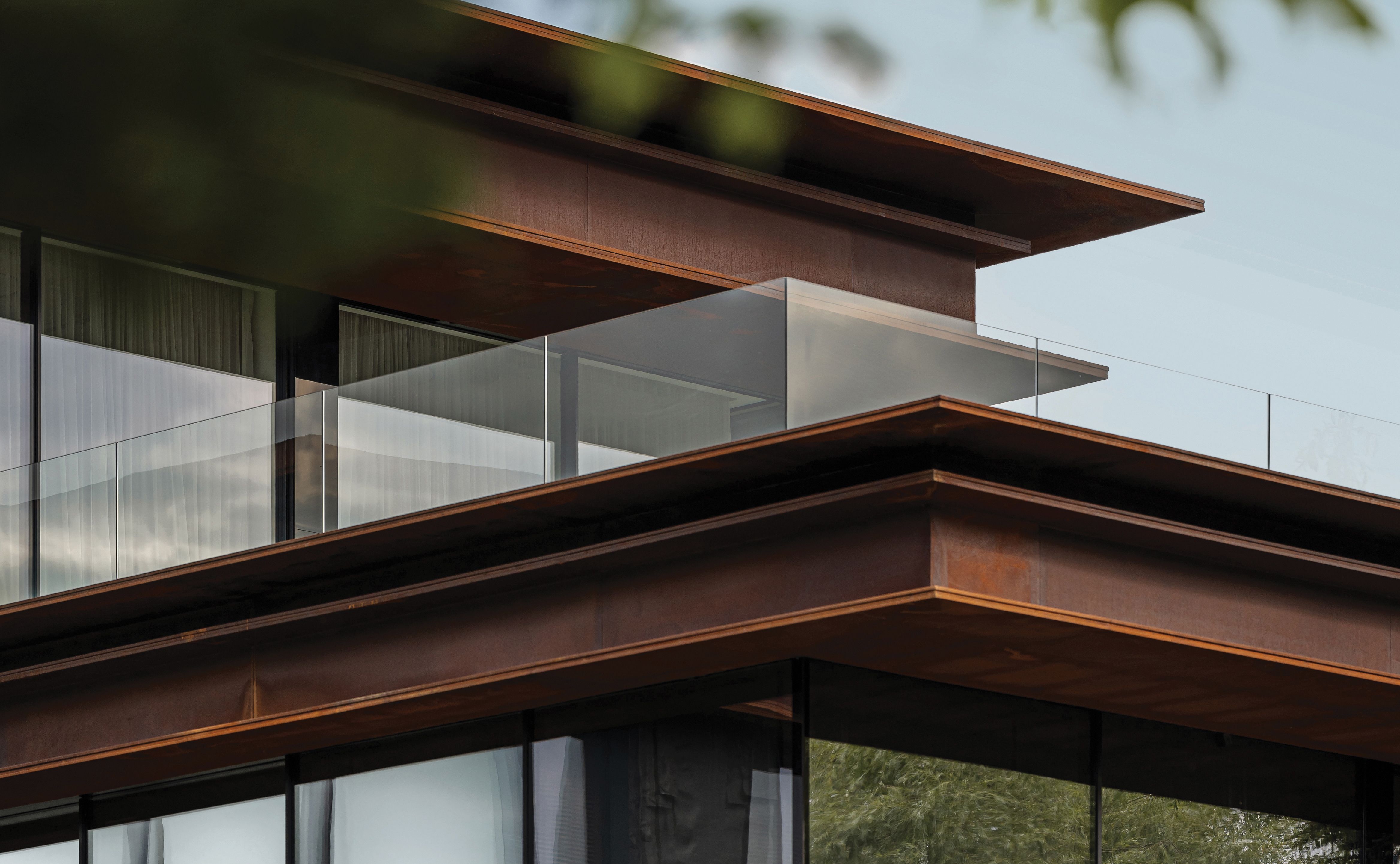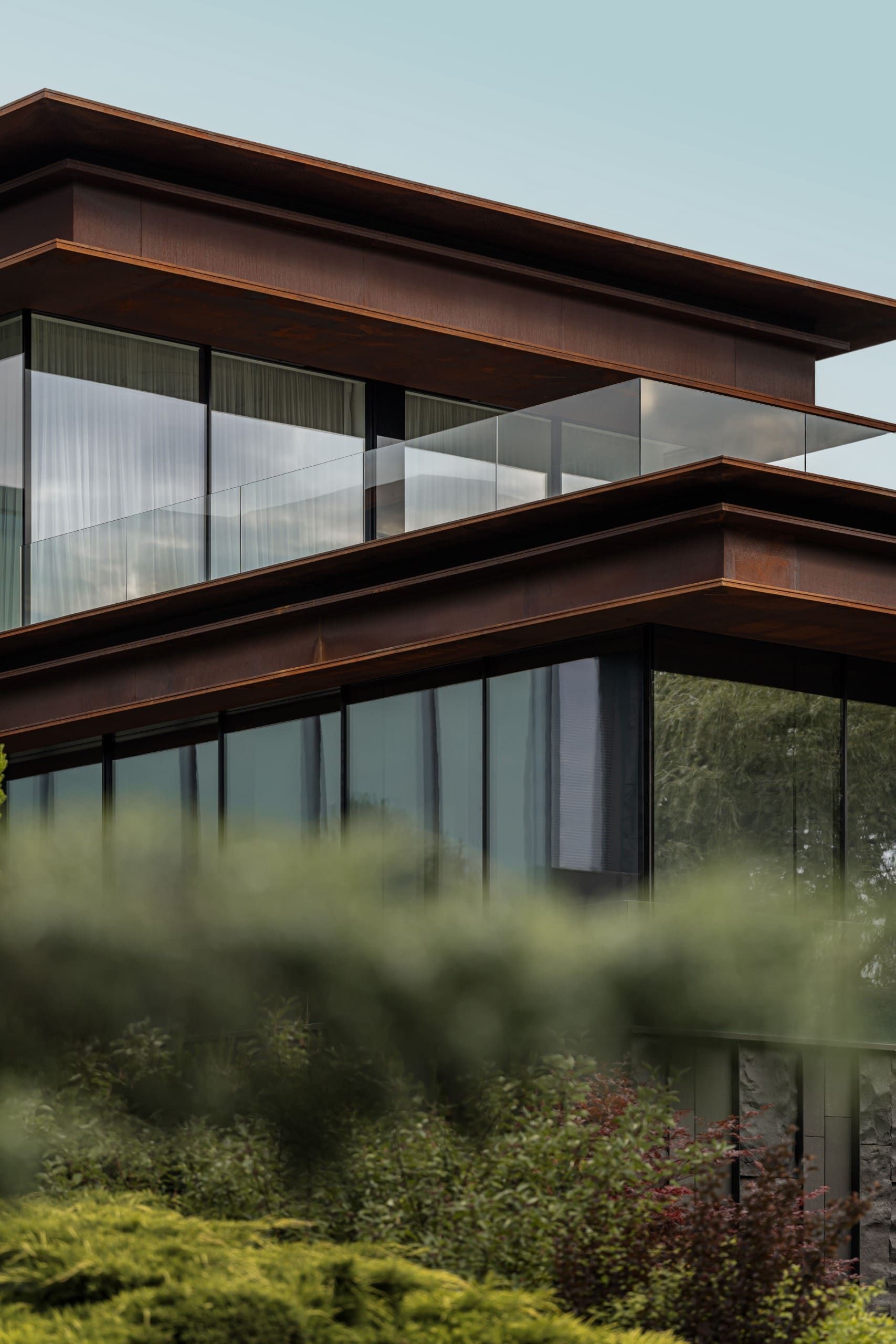 The first floor is elevated on slender columns, preserving uninterrupted views and creating a sense of openness. Lush greenery cascades from each level, blurring the boundary between interior and exterior. On the lower level, ceramic tubes form sculptural structural columns, adding vertical rhythm and visual interest, while advanced 3D-printing technology allowed the roof to take its seamless, flowing form, completing the home’s dynamic, sculptural character.