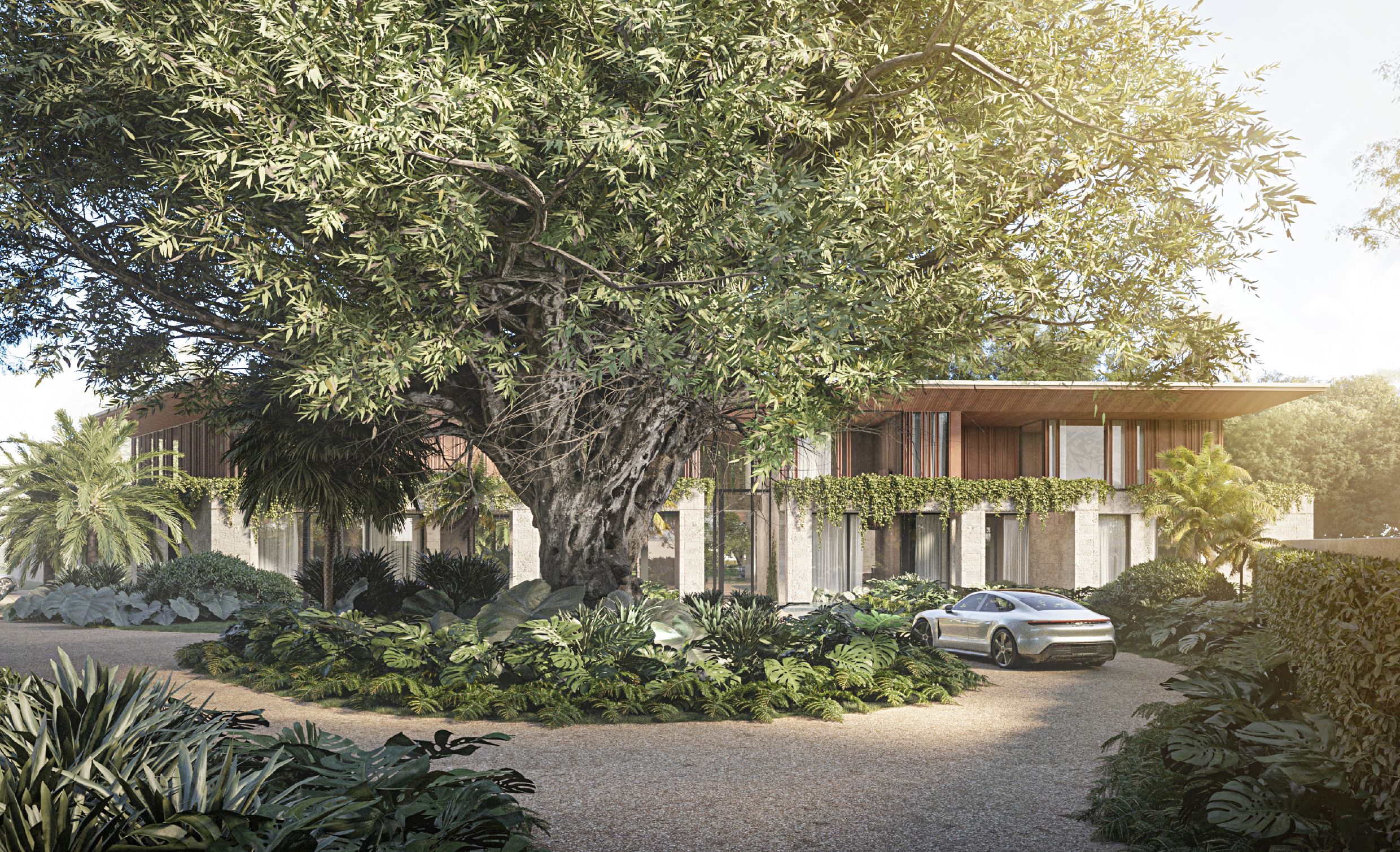 The project’s main idea was to create a home with a distinct personality, one that stands apart from its neighbors while remaining harmoniously connected to its tropical surroundings.