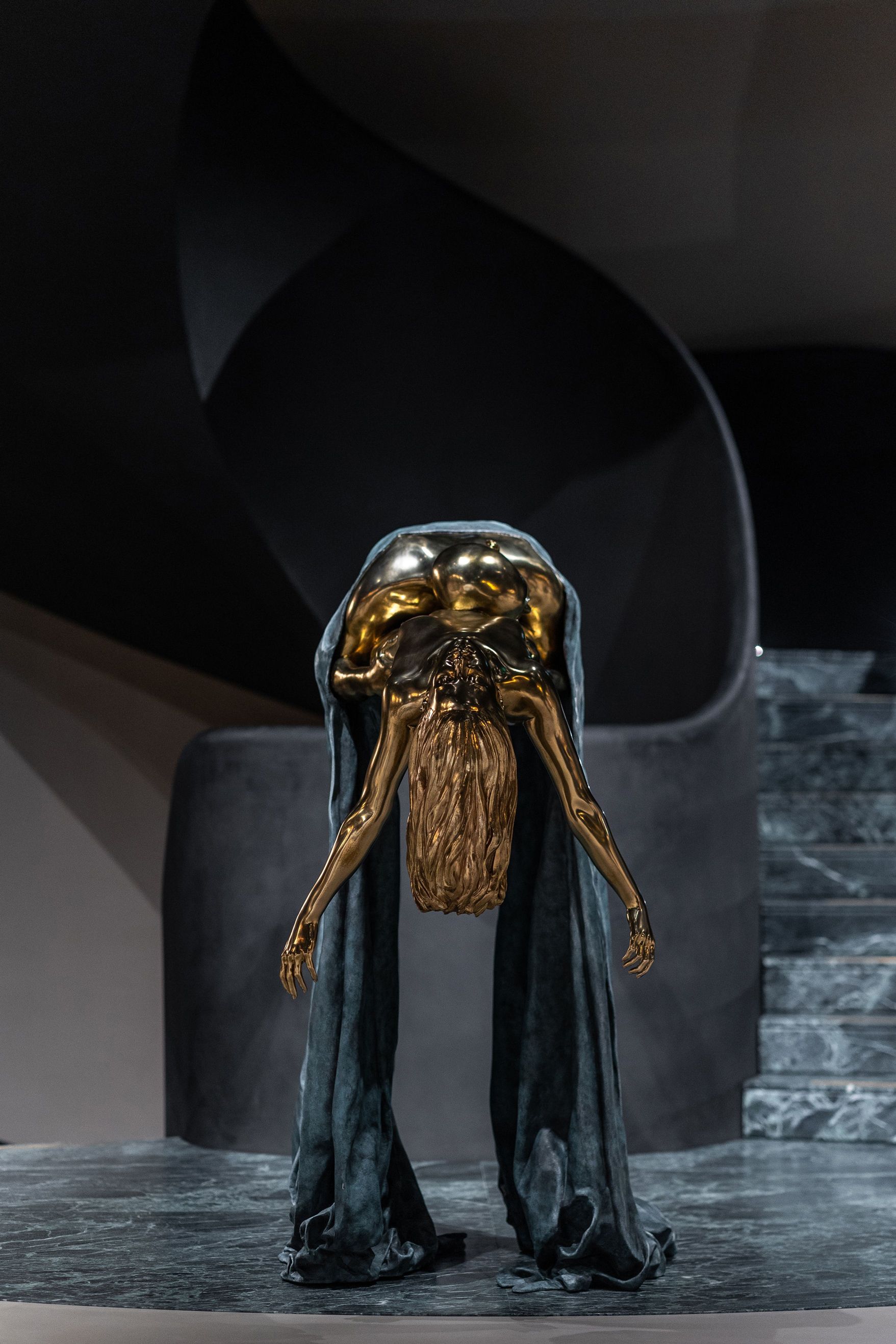 The centerpiece of the lobby is a floating oak tree enclosed in a spherical glass capsule — a powerful symbol of life, resilience, and balance.
