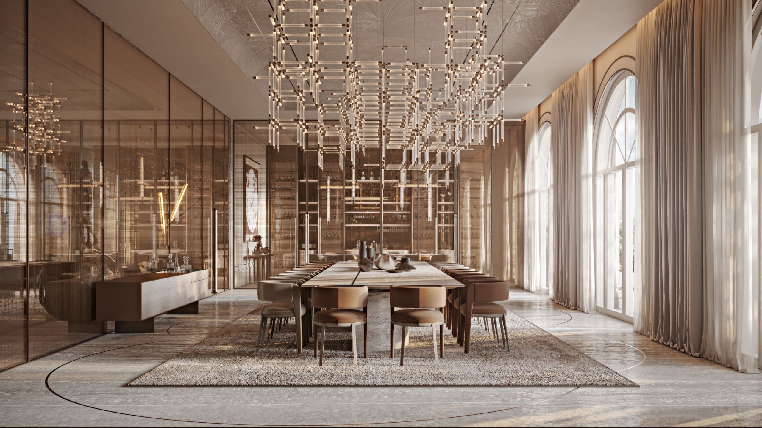 The concept revolves around creating a flow between lavish indoor spaces and expansive outdoor terraces, reflecting Dubai’s vibrant style while offering residents a serene, exclusive retreat.